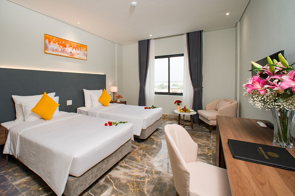 Khách sạn cung cấp ba loại phòng, bao gồm Grand Deluxe, Grand Premier và Grand Executive, và tất cả đều có không gian, sang trọng và thoải mái, giống như một ốc đảo tại các khu công nghiệp Tân Đô -Tân Đức - Long An.