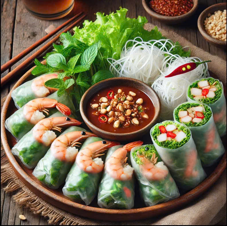 Món ăn này phổ biển ở Việt Nam chủ yếu dùng bánh tráng được cuốn với nhiều thành phần khác nhau tùy từng vùng miền, thường dùng để khai vị hay ăn kèm cùng đồ uống như một món nhậu, được làm từ bánh tráng cuộn với các loại rau thơm, bún, và một số loại thịt như thịt bò, heo, vịt, tôm, cá, cua v.v.[2]