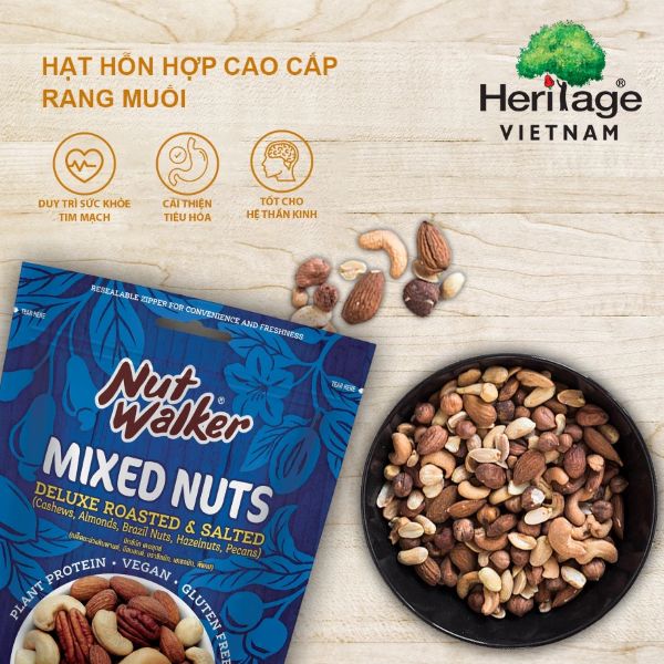 HẠT HỖN HỢP CAO CẤP RANG MUỐI NUT WALKER là sản phẩm của Tập đoàn Heritage Snacks and Food (Thái Lan)