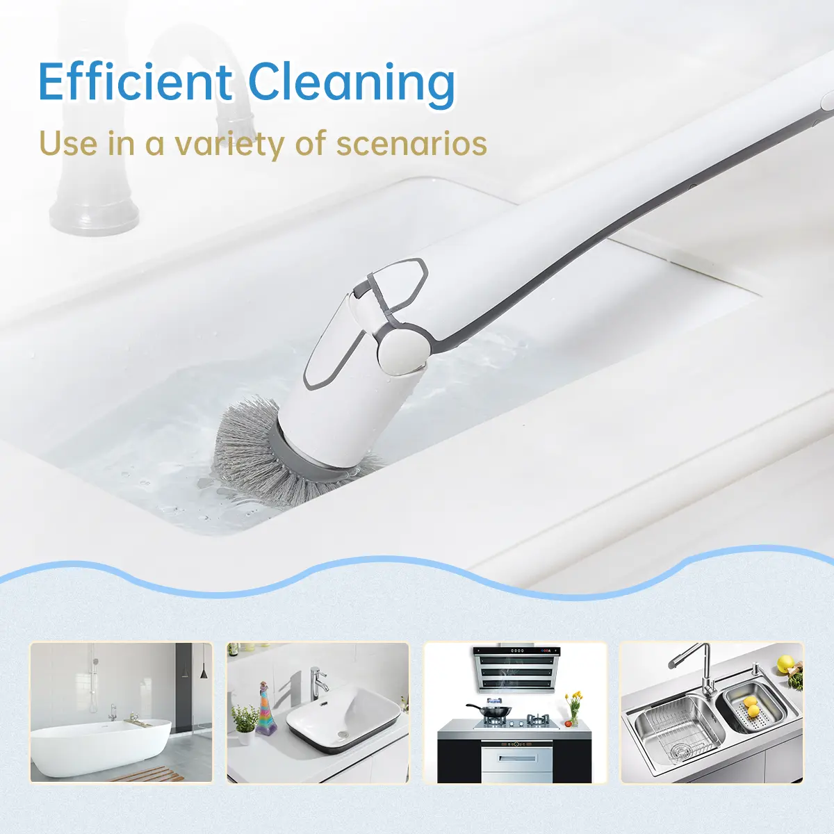 Máy chà sàn điện không dây xoay tròn mạnh mẽ, bàn chải làm sạch đa năng dùng trong gia đình, bồn tắm, nhà bếp, hồ bơi, đánh bóng, loại bỏ vết bẩn, 2 tốc độ, có thể sạc lại, kèm 6 đầu bàn chải.